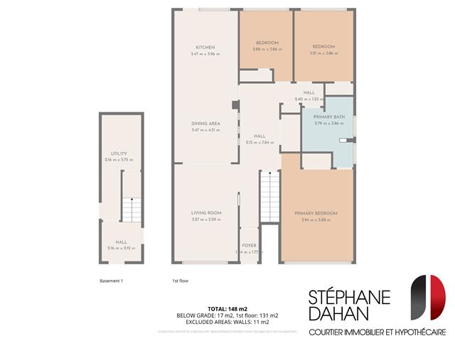 | Hall d'entrée | 4.7 x 2.2 M | Rez-de-chaussée | Bois |